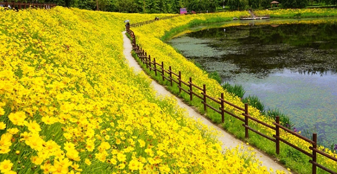 - 특징: 남강변을 따라 조성된 악양생태공원은 봄이면 금계국과 샤스타데이지가 만개하여 황금빛 물결을 이룹니다. 산책로, 생태연못, 전망대 등이 있어 가족 단위 나들이에 적합합니다.